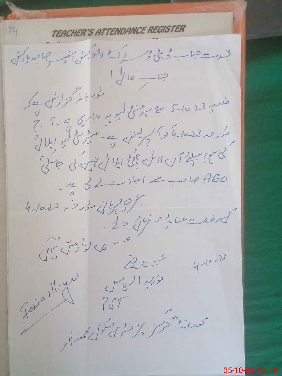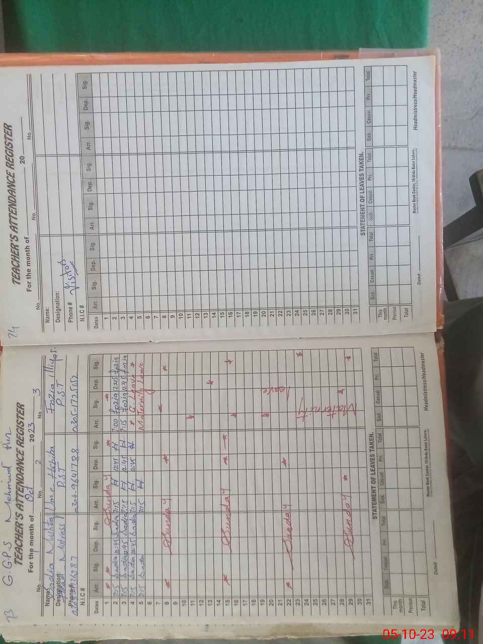 | Name: SA**** MU**** Designation: (School Headmaster's/Headmistress's) PST Phone/Cell Number: 03**** |