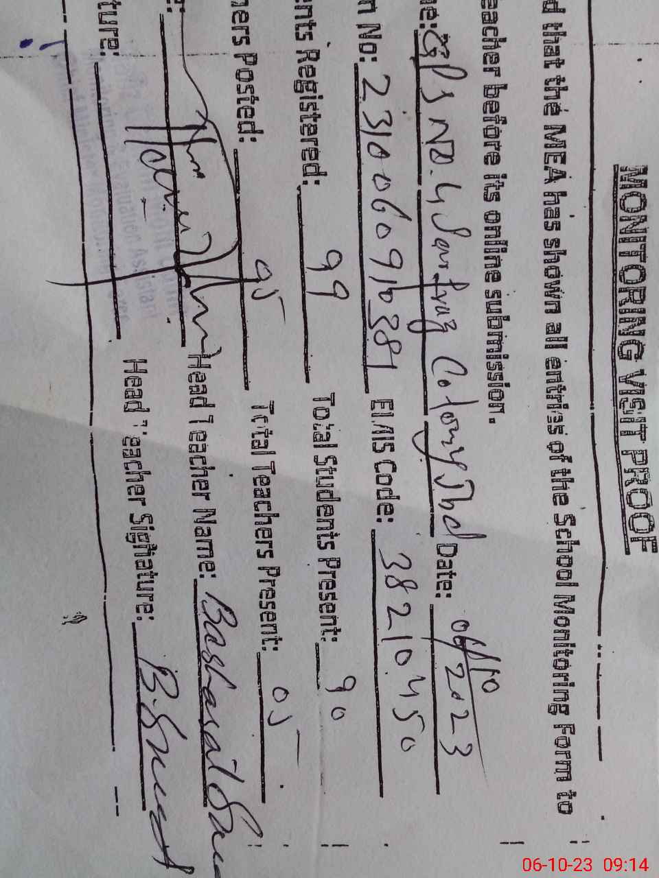 | Monitoring Date: 06-10-2023 | Start Time: 06-10-2023 09:00 AM | End Time: 06-10-2023 09:40 AM | Name of MEA: HA**** GH**** MO**** UDDI**** | |