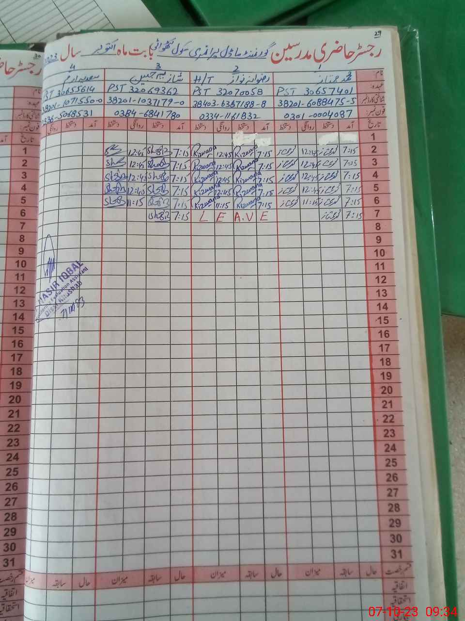 | Name: Ri**** Na**** Designation: (School Headmaster's/Headmistress's) PST Phone/Cell Number: 03**** |