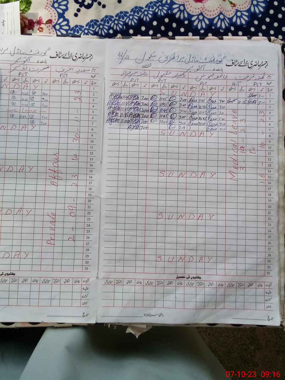 | Leave | Duty | Absent | Maternity | Medical | Ex- Pak |