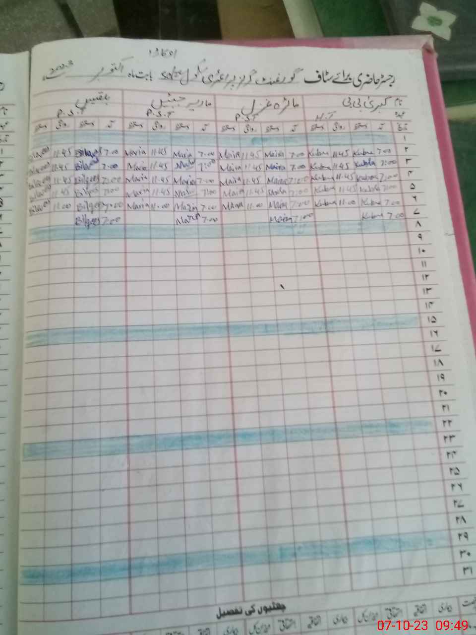 | CNIC | Full Name | Designation | R/C | Absence During Last Calender Month |