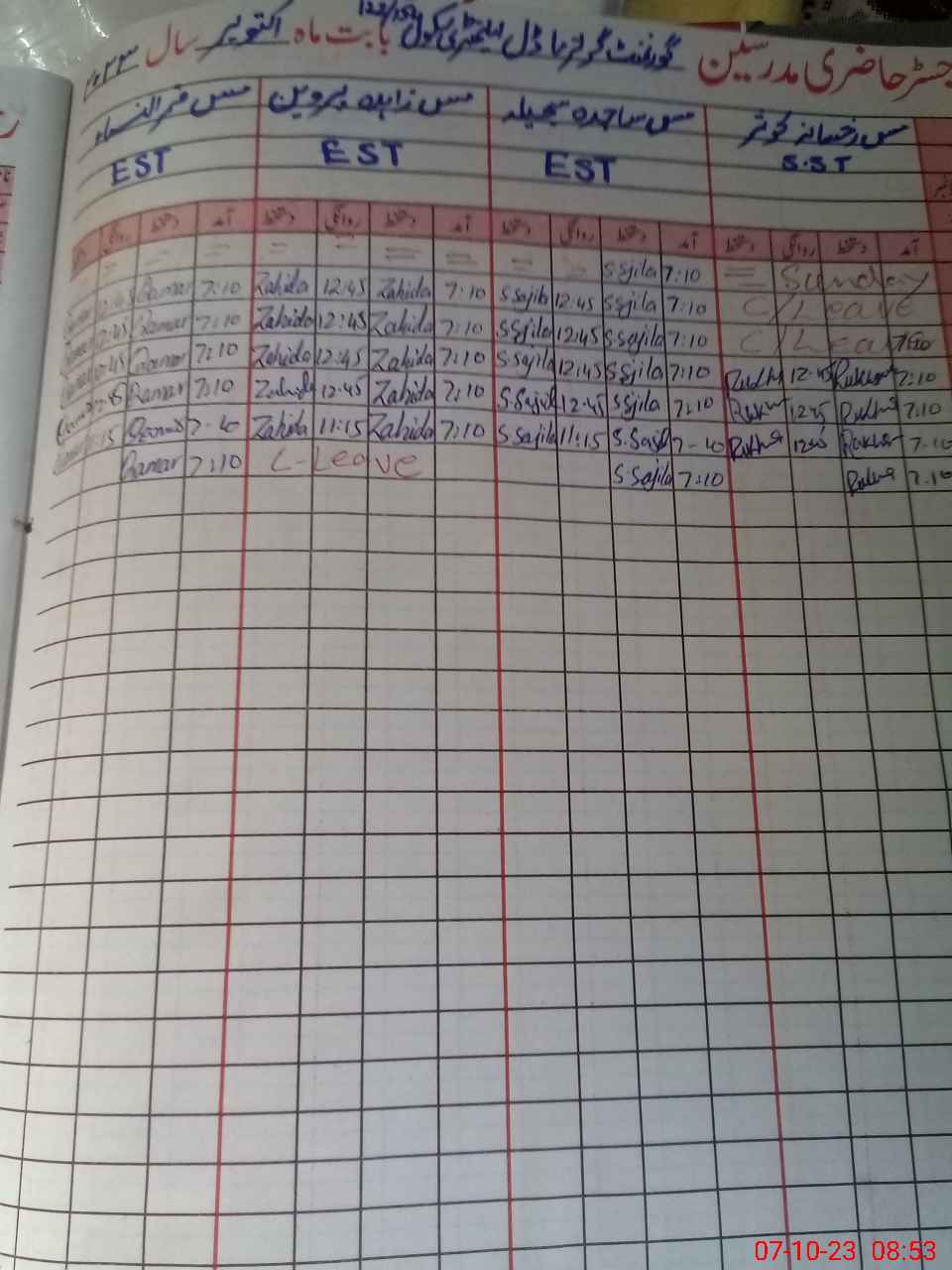 | 36**** | Za**** Pa**** | 1 | 2 | 0 | 0 | 0 | 0 | 0 | 0 | 0 | 2 | Absent (Un-Authorized) | |