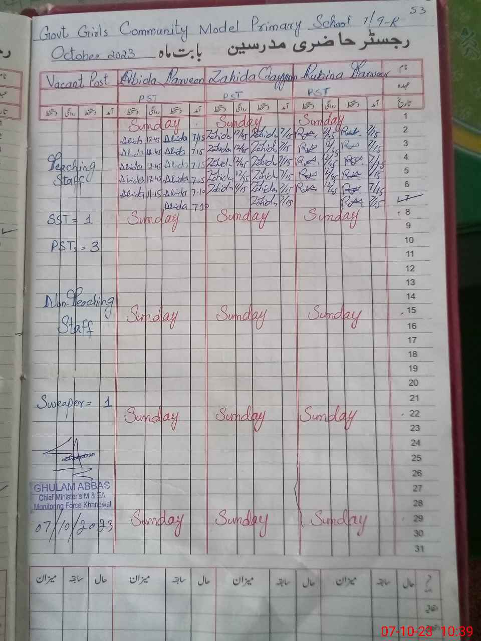 | Name: Ab**** Pa**** Designation: (School Headmaster's/Headmistress's) PST Phone/Cell Number: 03**** |