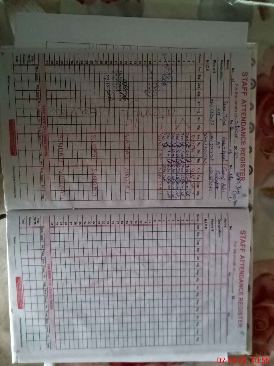 | Name: SA**** TU**** Designation: (School Headmaster's/Headmistress's) PST Phone/Cell Number: 03**** |
