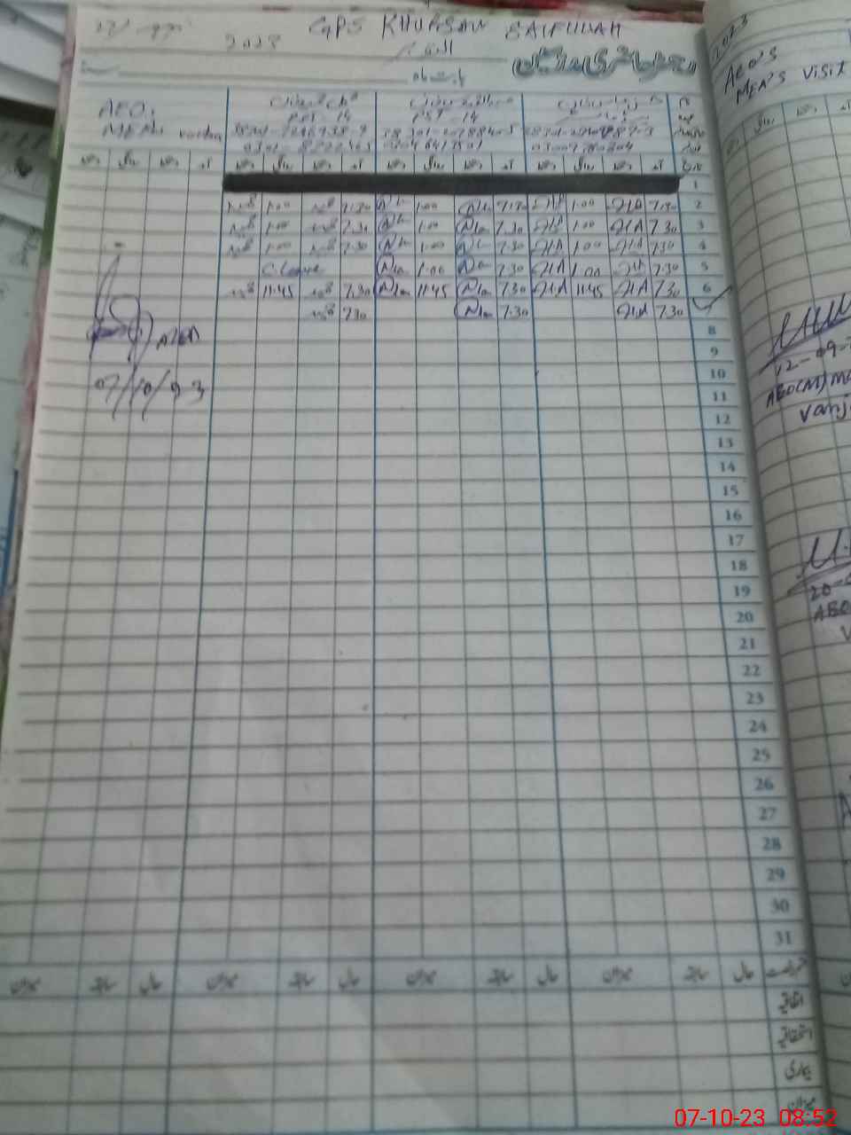 | Monitoring Date: 07-10-2023 | Start Time: 07-10-2023 08:52 AM | End Time: 07-10-2023 09:13 AM | Name of MEA: Gu**** Hu**** Kh**** | |