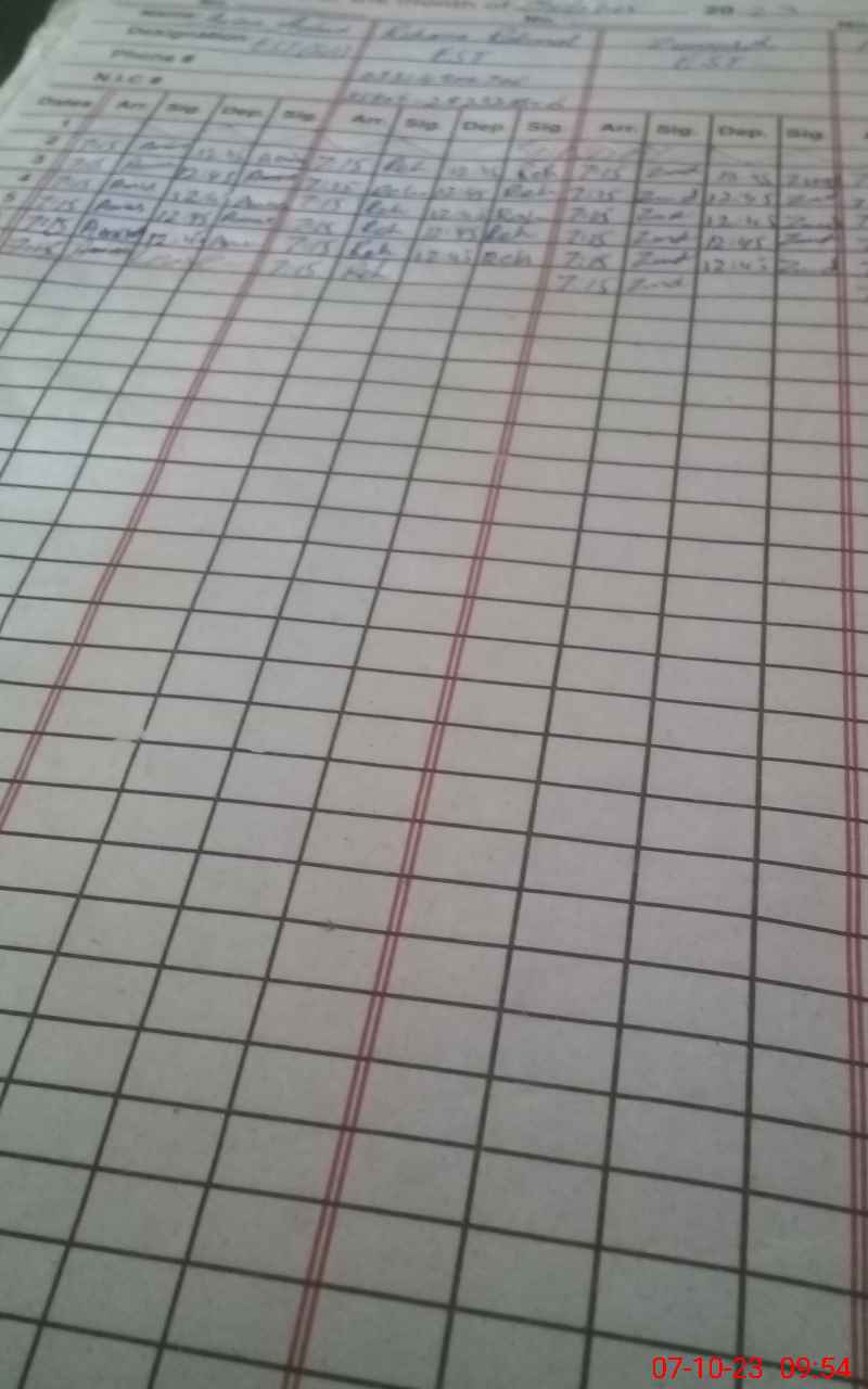 | CNIC | Full Name | Designation | R/C | Absence During Last Calender Month |