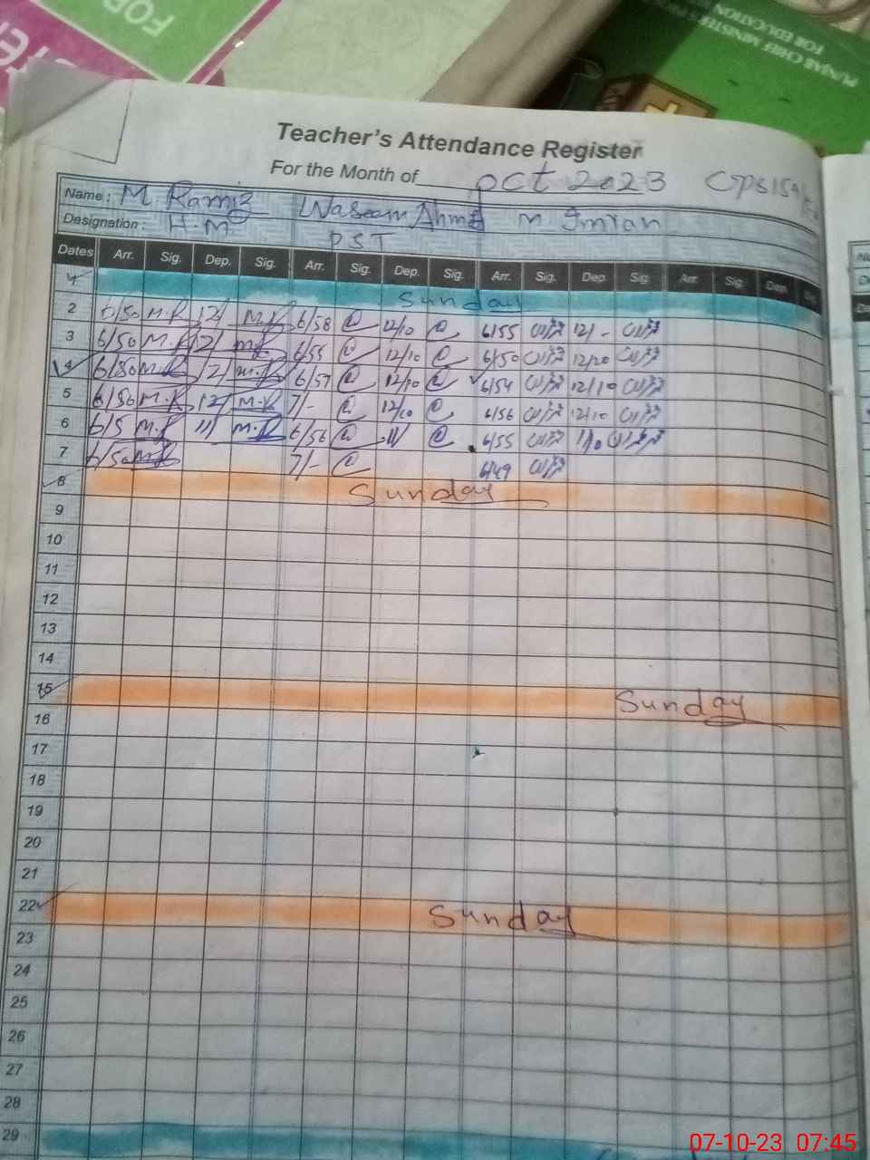 | Name: MU**** RA**** Designation: (School Headmaster's/Headmistress's) PST Phone/Cell Number: 03**** |