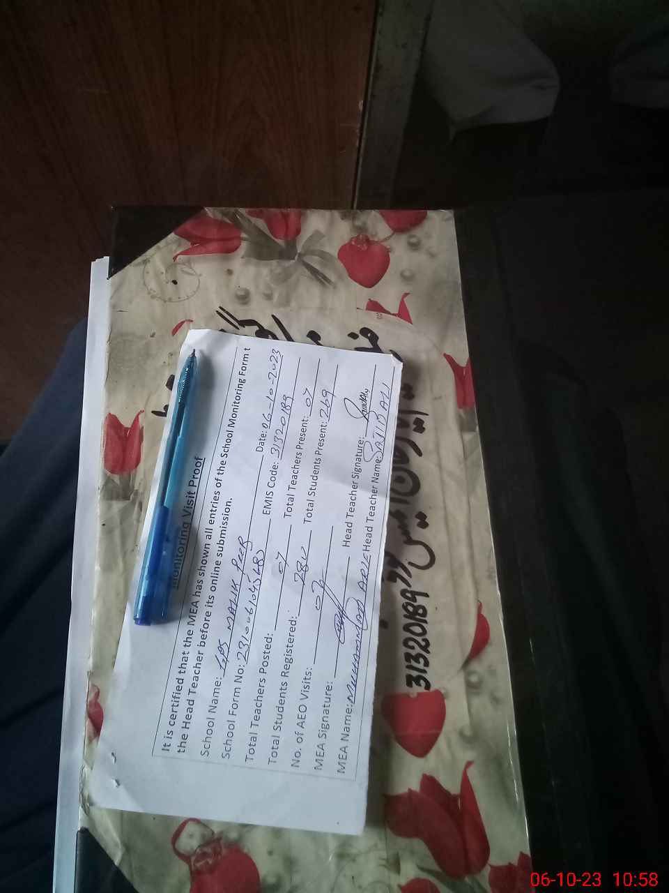| Attendance Register | Head Teacher | MEA with School | Visit Proof |