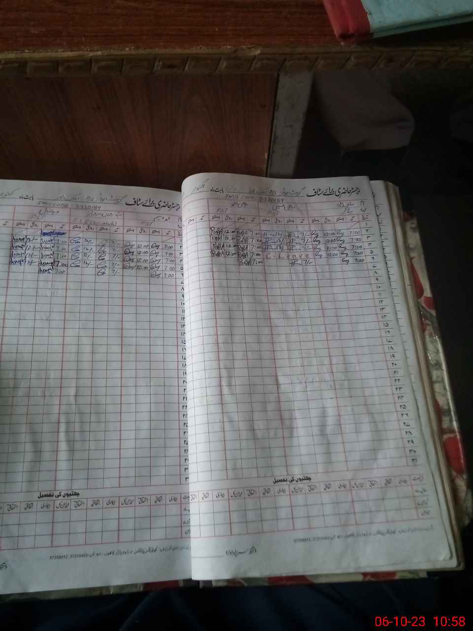 | CNIC | Full Name | Designation | R/C | Absence During Last Calender Month |