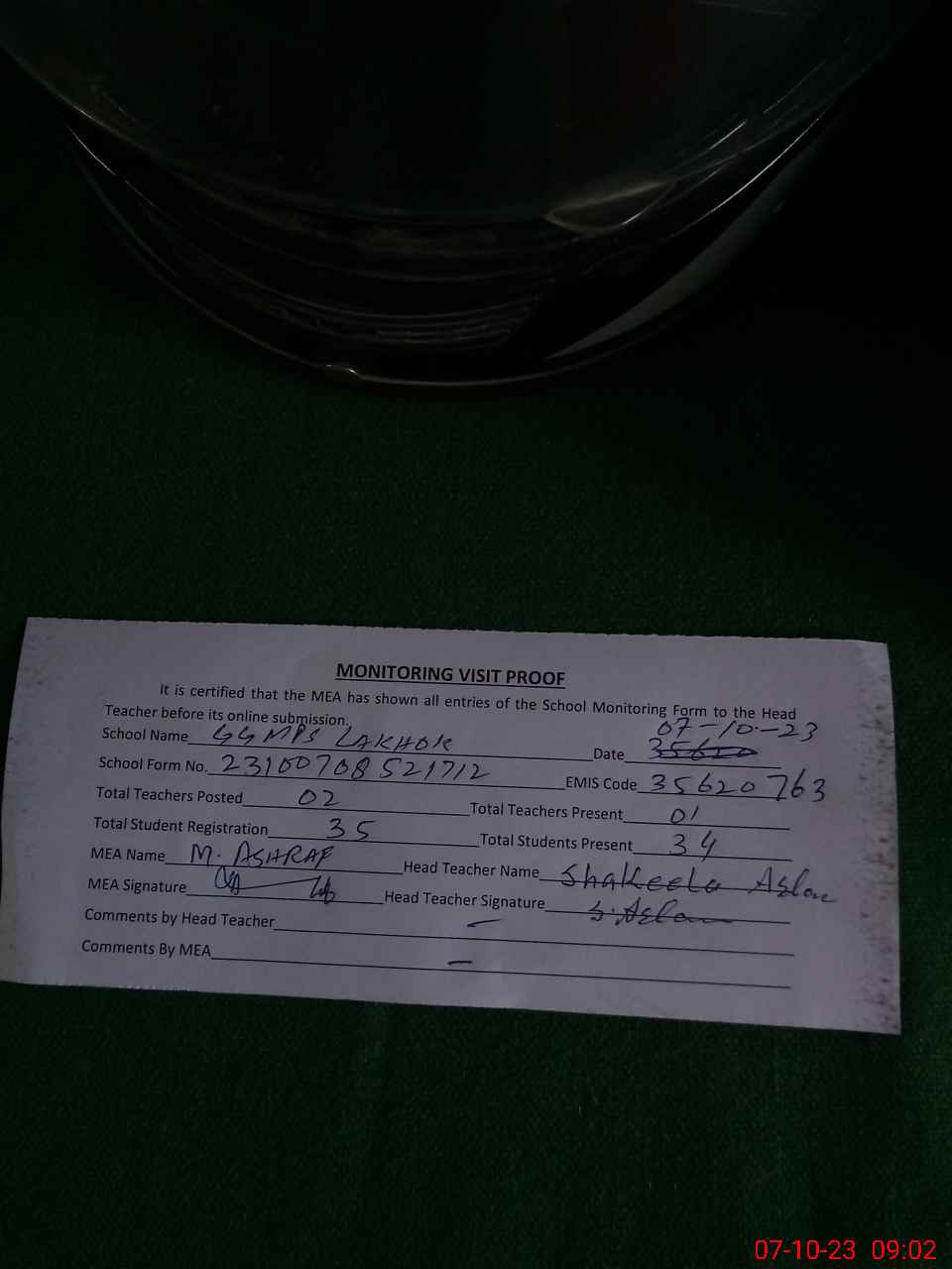 | EMIS Code: 35620763 | Name of School: GGPS MODEL DERA LAKHOKE | |||