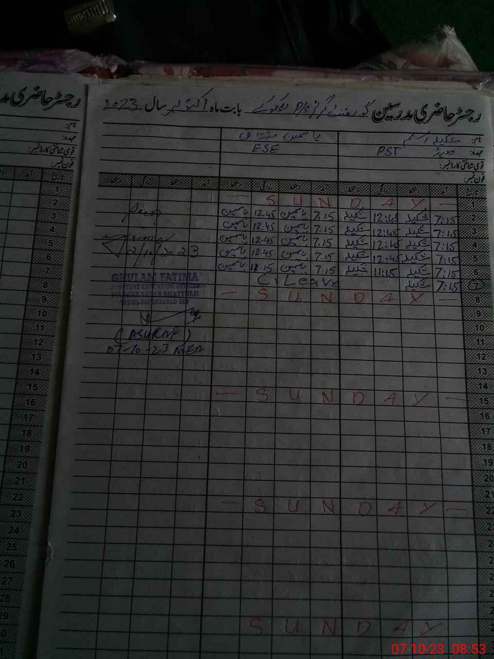 | Name: Sh**** As**** Designation: (School Headmaster's/Headmistress's) PST Phone/Cell Number: 03**** |