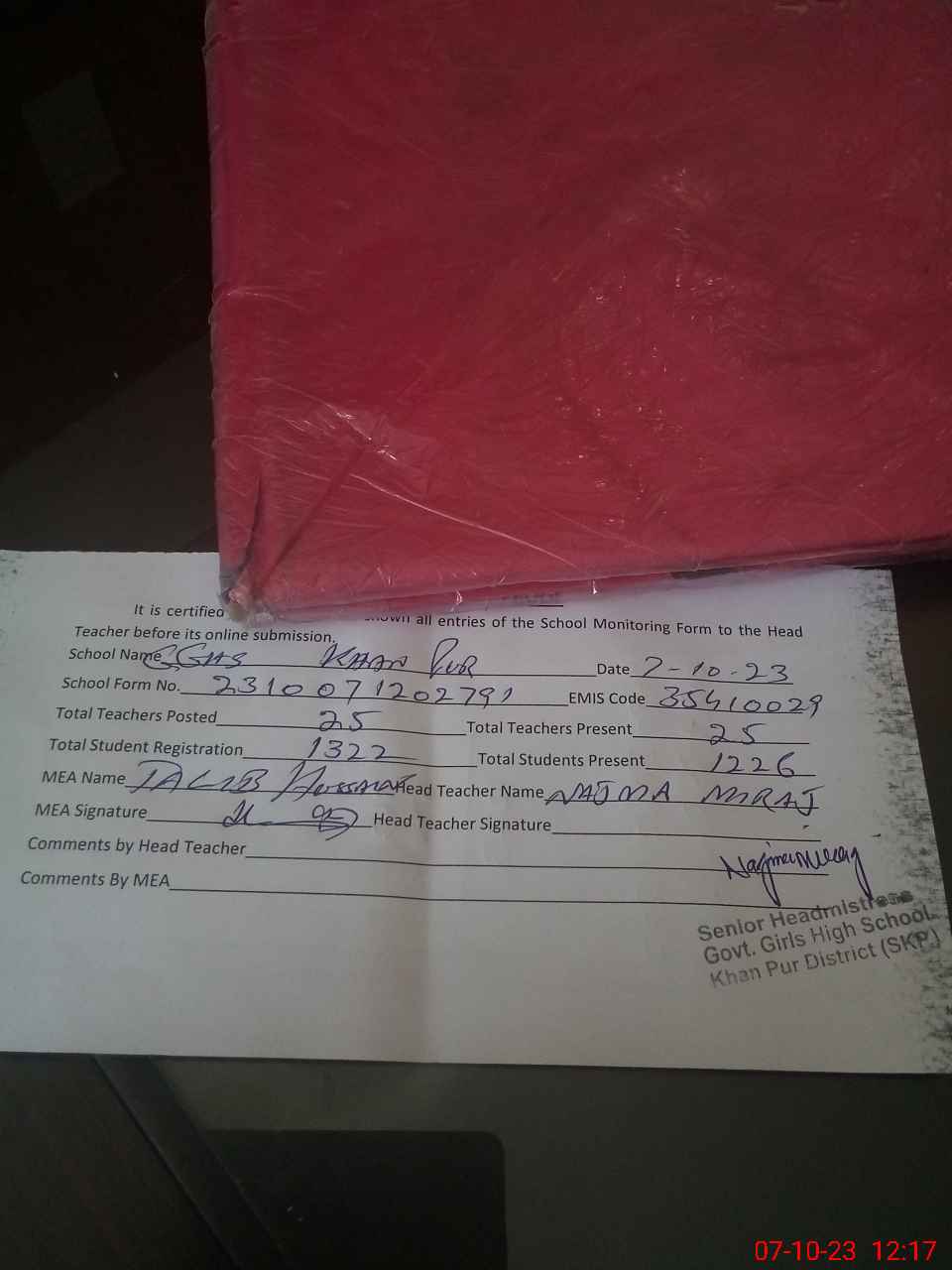 | EMIS Code: 35410029 | Name of School: GGHS KHANPUR | |||