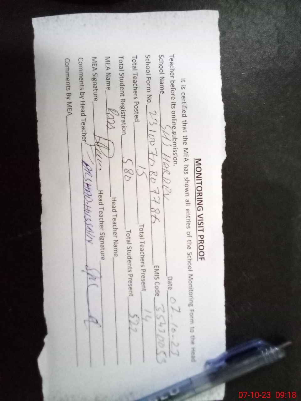 | EMIS Code: 35430053 | Name of School: GHS HARDEV | |||
