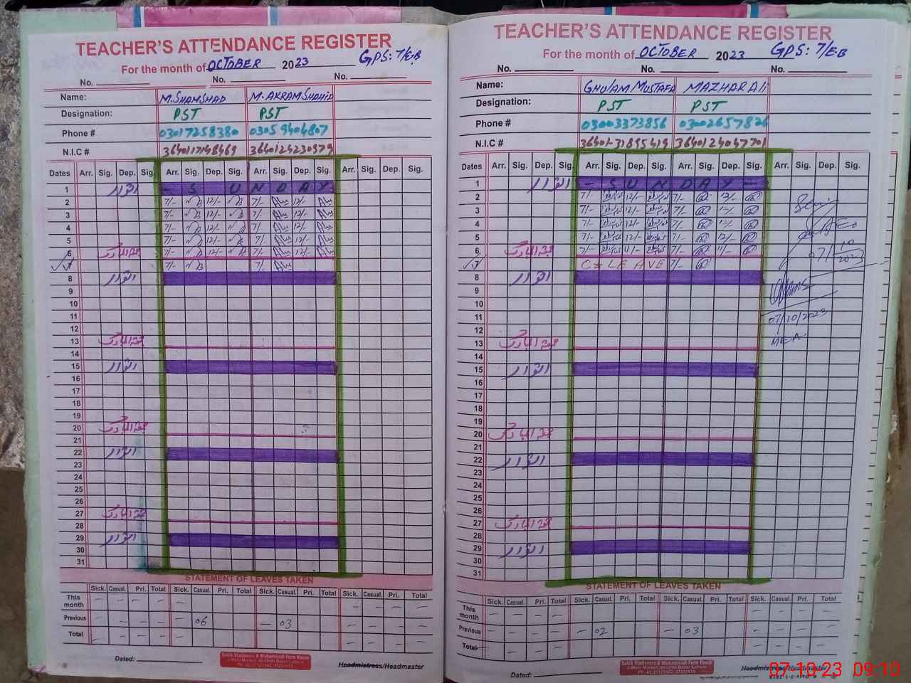 | Name: MU**** SH**** Designation: (School Headmaster's/Headmistress's) PST Phone/Cell Number: 03**** |