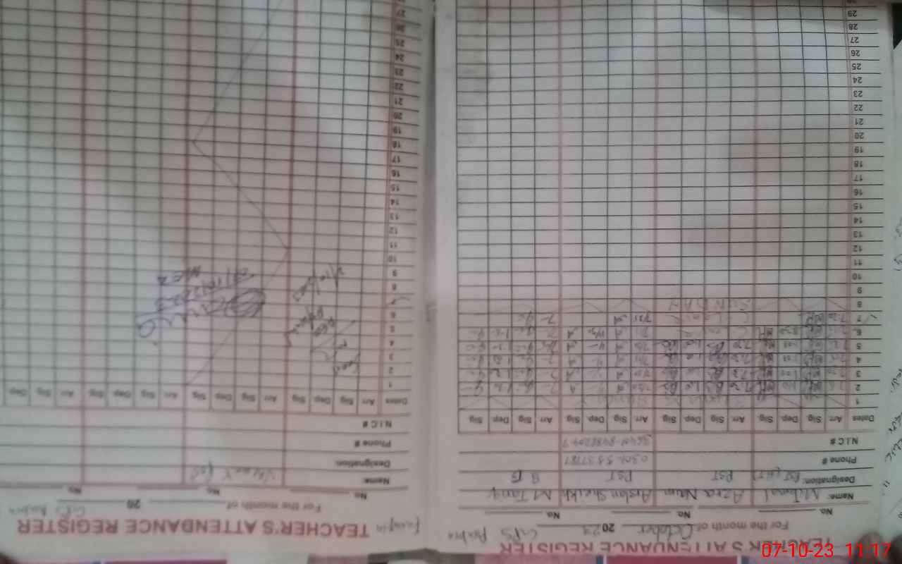 | Name: MU**** JA**** Designation: (School Headmaster's/Headmistress's) PST Phone/Cell Number: 03**** |