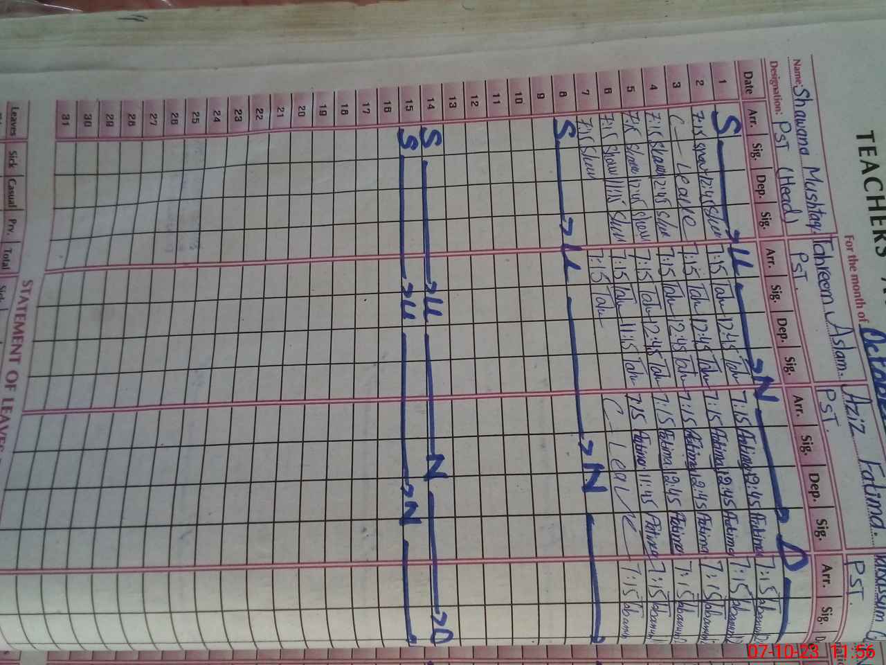 | CNIC | Full Name | Designation | R/C | Absence During Last Calender Month |