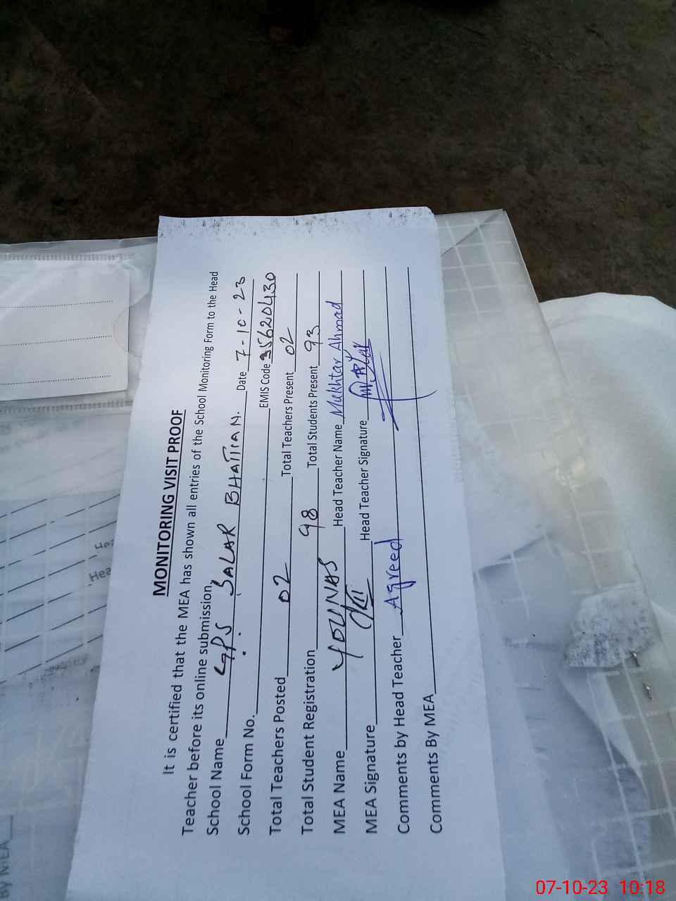 | EMIS Code: 35620430 | Name of School: GPS SALAR BHATTIAN | |||