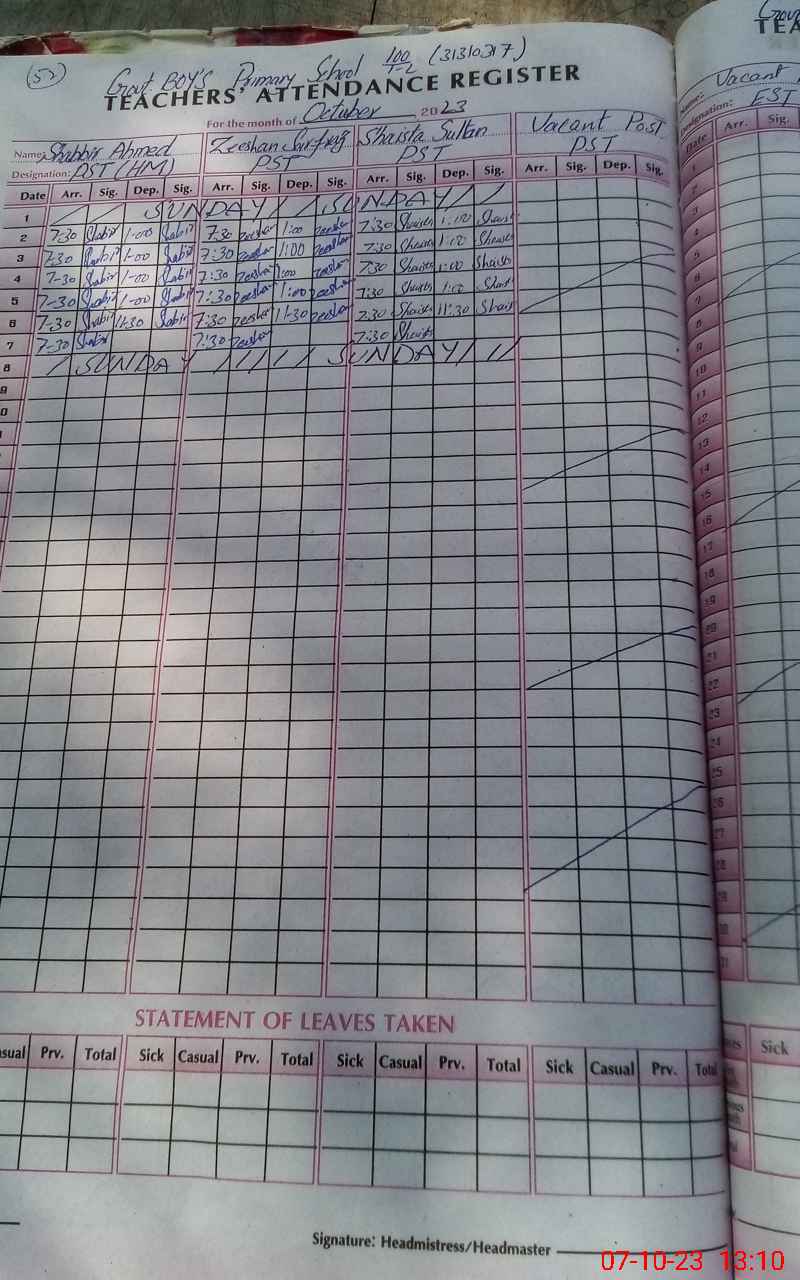 | Name: SH**** AH**** Designation: (School Headmaster's/Headmistress's) PST Phone/Cell Number: 03**** |