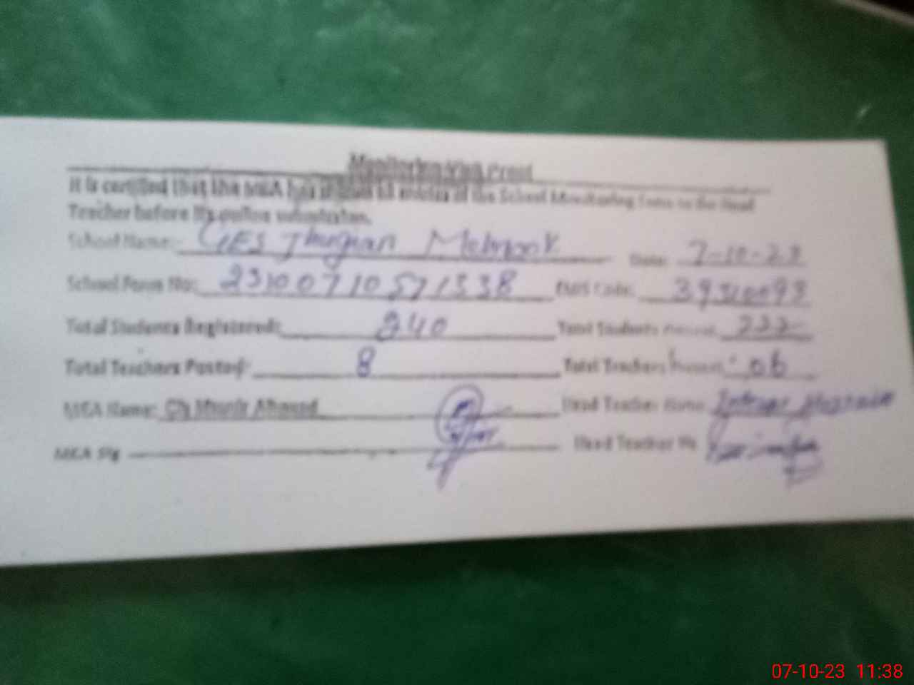 | Monitoring Date: 07-10-2023 | Start Time: 07-10-2023 10:57 AM | End Time: 07-10-2023 11:38 AM | Name of MEA: MU**** AH**** | |