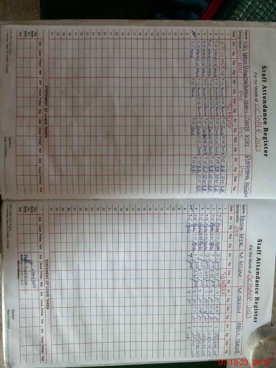 | CNIC | Full Name | Designation | R/C | Absence During Last Calender Month |