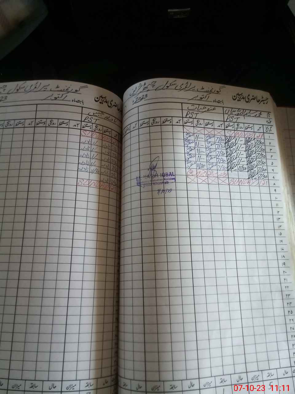 | Name: MSA**** UL**** MI**** Designation: (School Headmaster's/Headmistress's) PST Phone/Cell Number: 03**** |