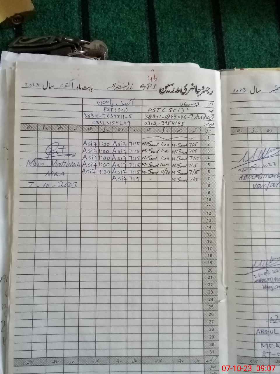 | Name: As**** Ya**** Designation: (School Headmaster's/Headmistress's) PST Phone/Cell Number: 03**** |