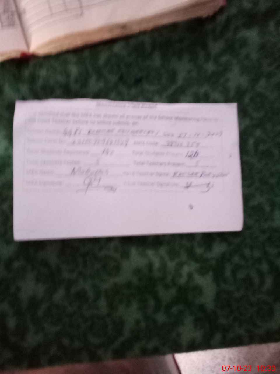 | Monitoring Date: 07-10-2023 | Start Time: 07-10-2023 09:54 AM | End Time: 07-10-2023 10:30 AM | Name of MEA: MA**** UL**** | |