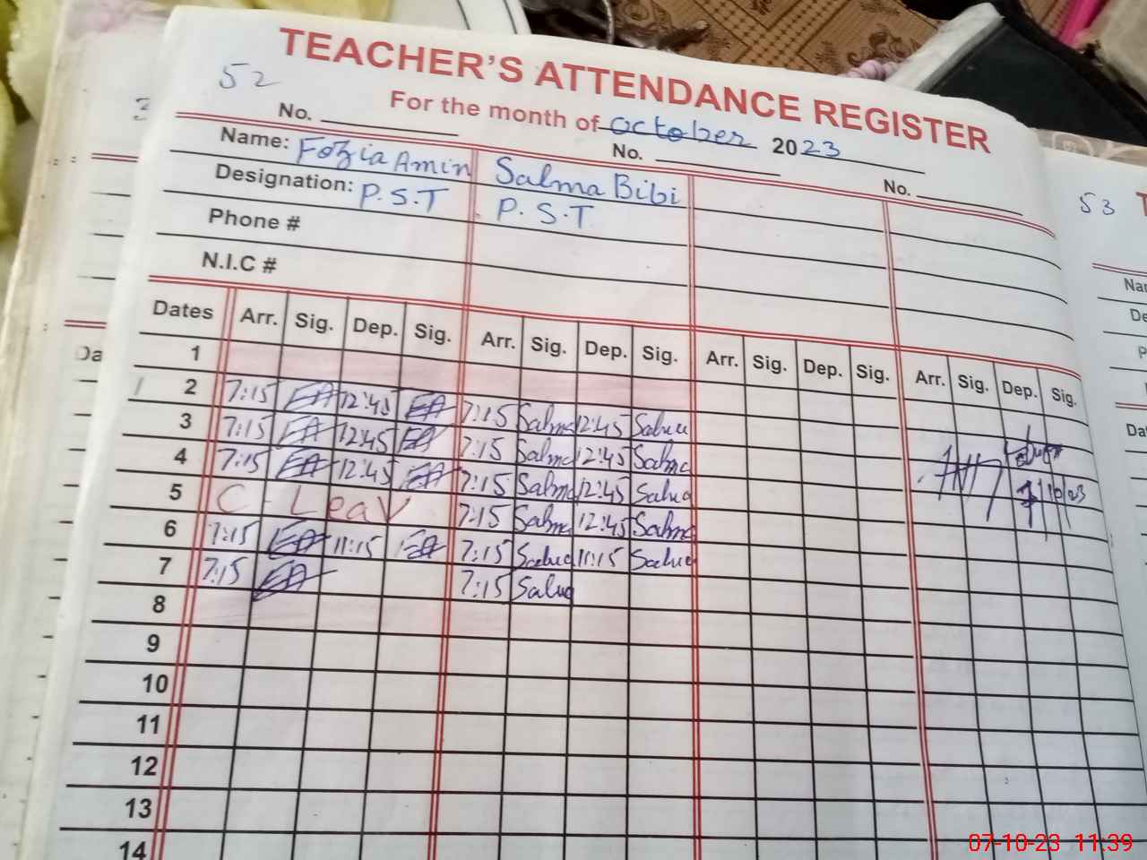 | Name: FO**** AM**** Designation: (School Headmaster's/Headmistress's) PST Phone/Cell Number: 03**** |