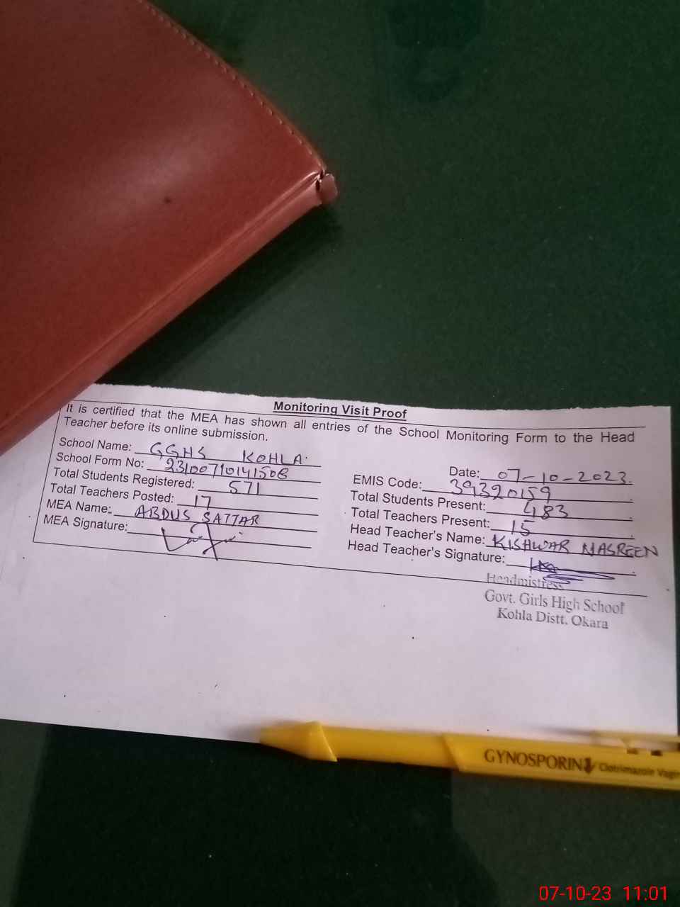 | Name: KI**** NA**** Designation: (School Headmaster's/Headmistress's) S.S.T.(Science) Phone/Cell Number: 03**** |
