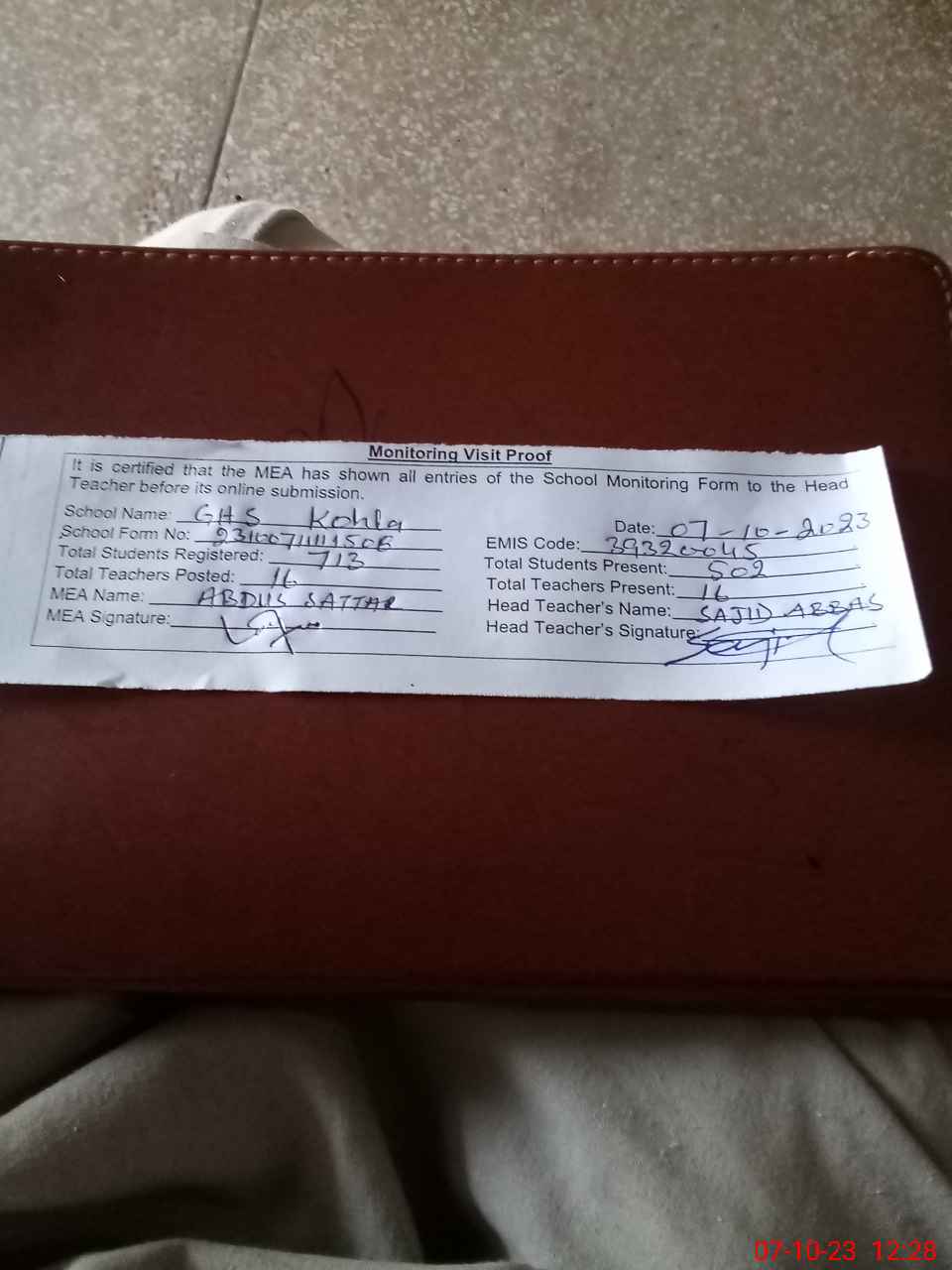 | EMIS Code: 39320045 | Name of School: GHS KOHLA | |||