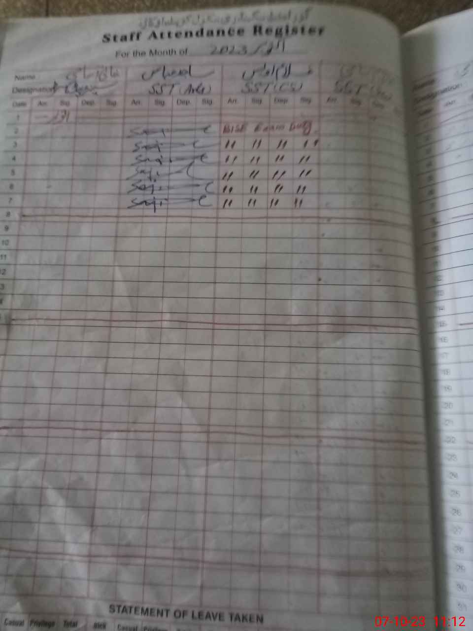 | 35**** | Gh**** Aw**** | 5 | 1 | 0 | 0 | 0 | 0 | 0 | 0 | 0 | 0 | 0 | Exam Duty |