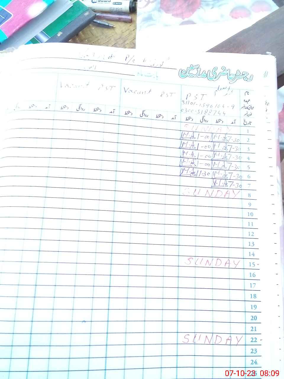 | CNIC | Full Name | Designation | R/C | Absence During Last Calender Month |
