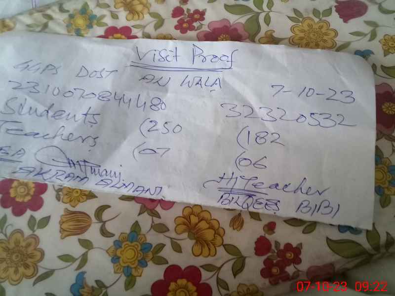 | EMIS Code: 32320532 | Name of School: GGPS DOST ALI WALA | |||