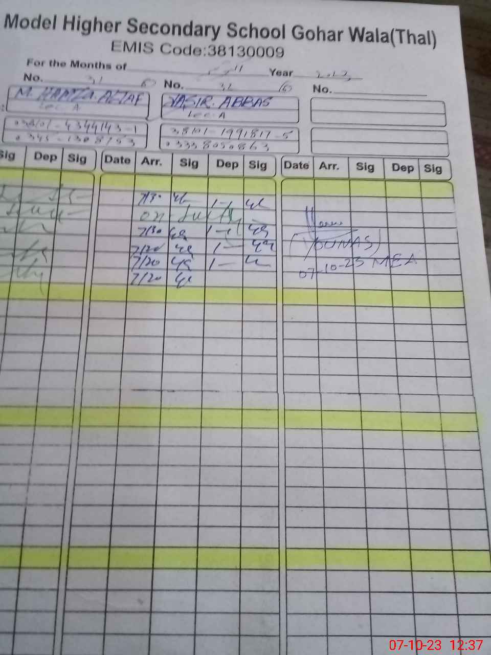 | EMIS Code: 38130009 | Name of School: GHSS GOHAR WALA | |||