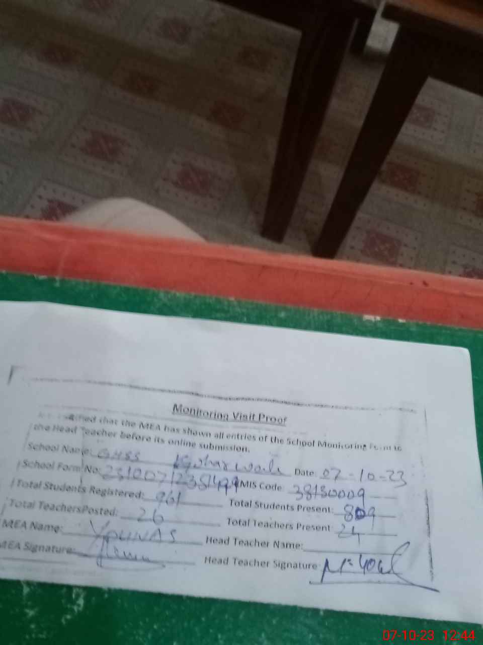 | Certified that this School was Inspected by the Undersigned MEA/DMO Today and the Information Stated Above is as Per Record. | |||||