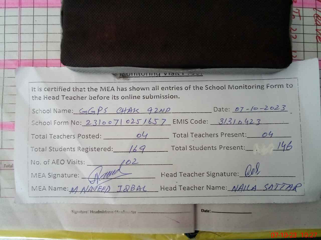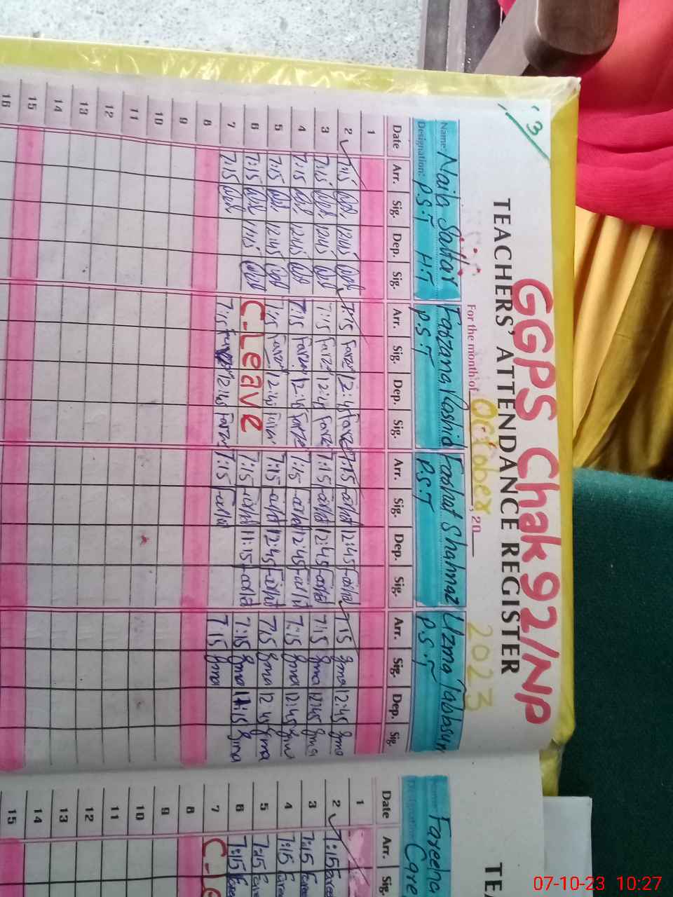 | EMIS Code: 31310423 | Name of School: GGPS CHAK NO. 92/NP | |||