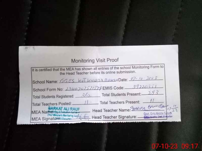 | EMIS Code: 39220351 | Name of School: GGES KOT KHUDA BUKSH | |||