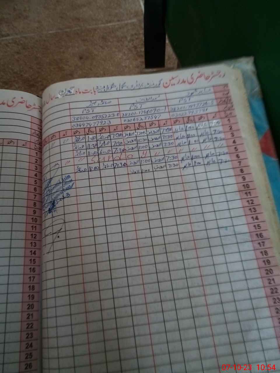 | CNIC | Full Name | Designation | R/C | Absence during last cal. month |