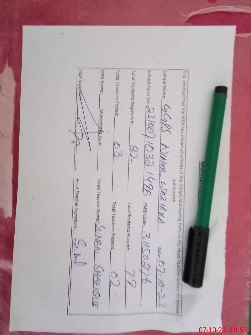 | Certified that this School was Inspected by the Undersigned MEA/DMO Today and the Information Stated Above is as Per Record. | |||||