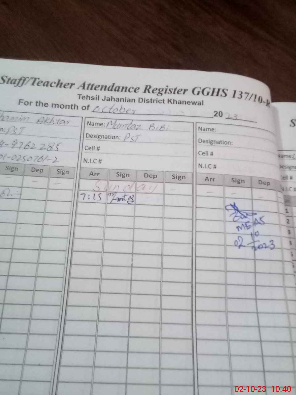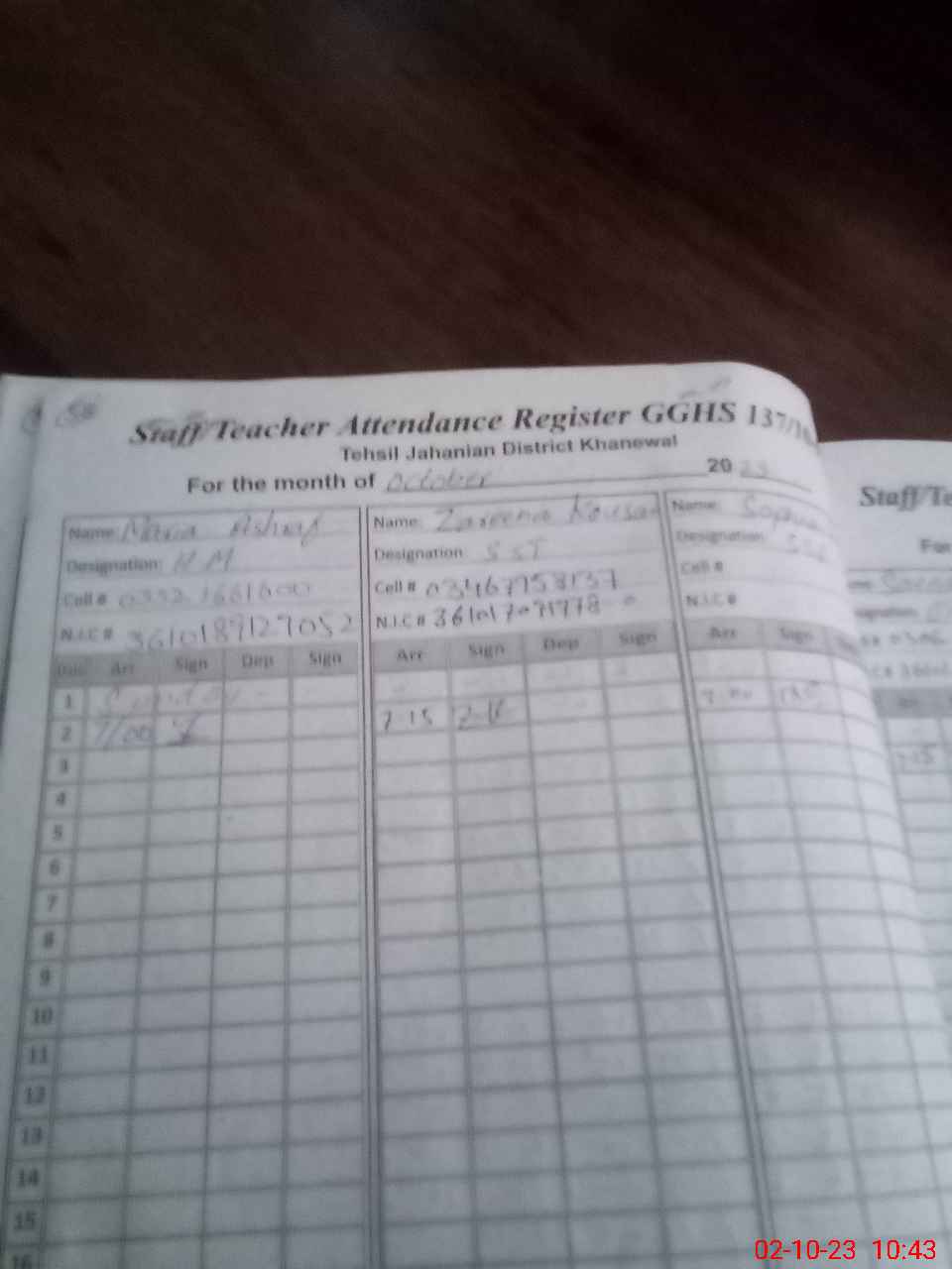 | Name: Ma**** As**** Designation: (School Headmaster's/Headmistress's) Headmistress Phone/Cell Number: 03**** |
