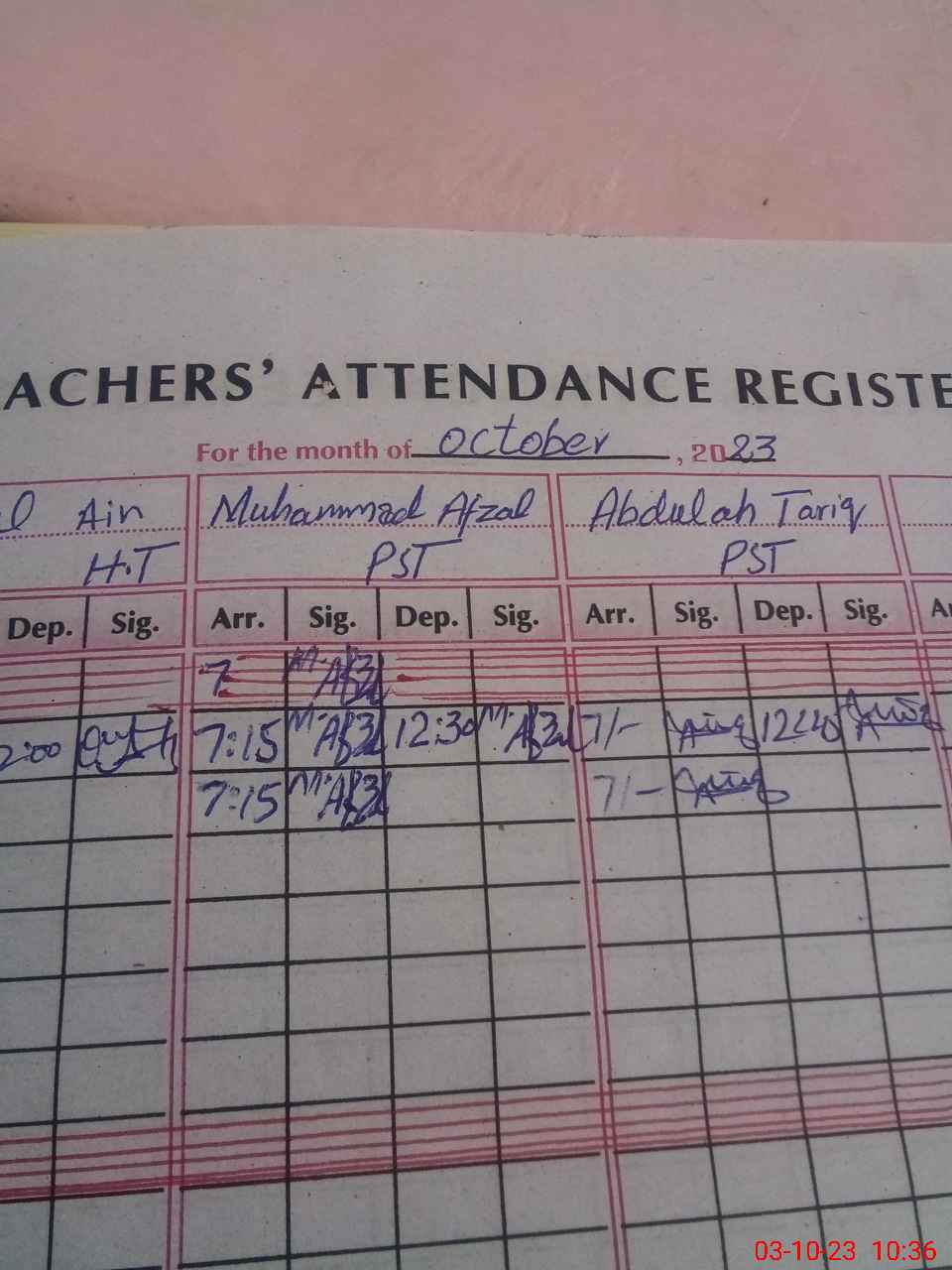 | CNIC | Full Name | Designation | R/C | Absence During Last Calender Month |