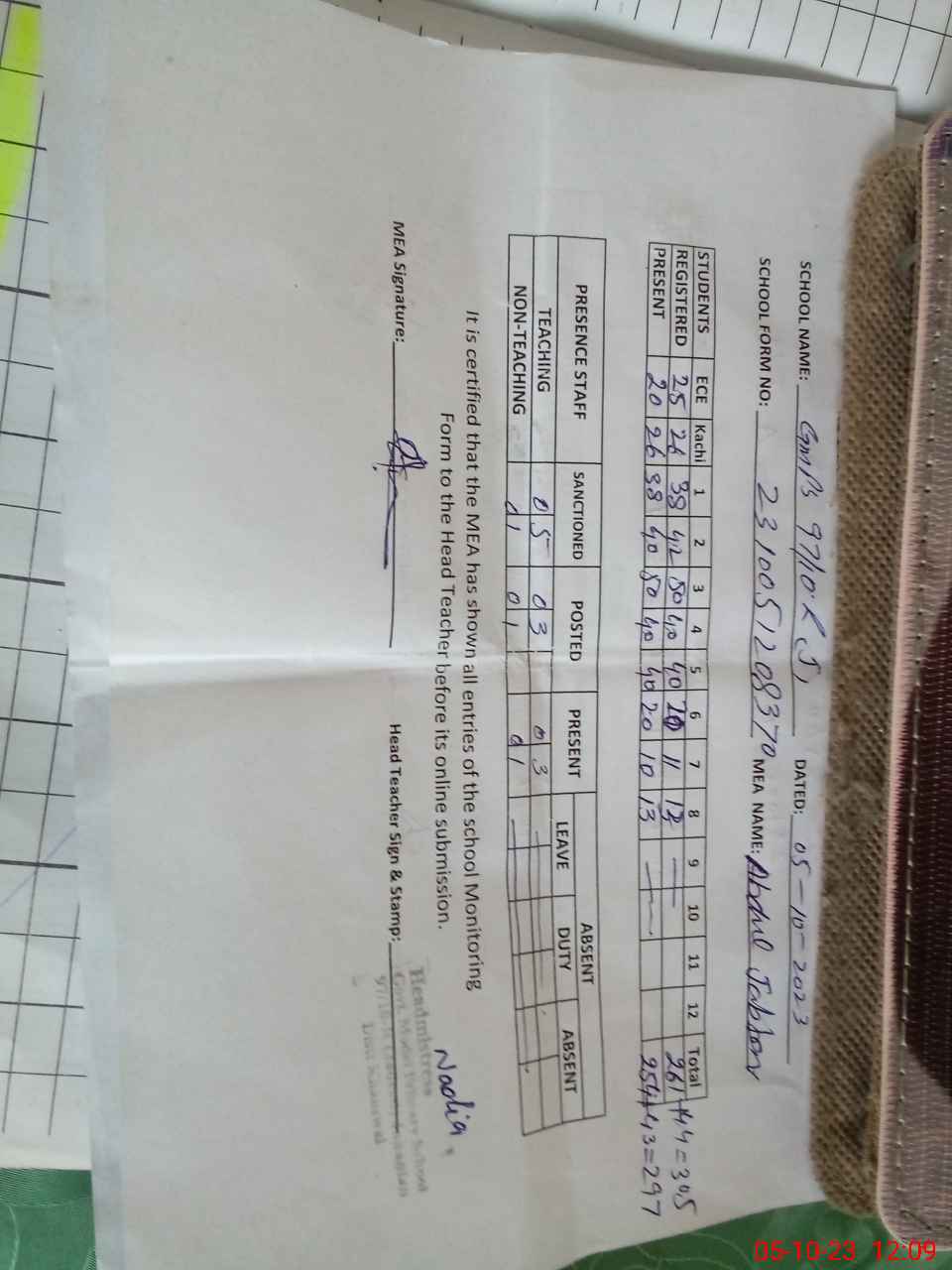 | Certified that this School was Inspected by the Undersigned MEA/DMO Today and the Information Stated Above is as Per Record. | |||||