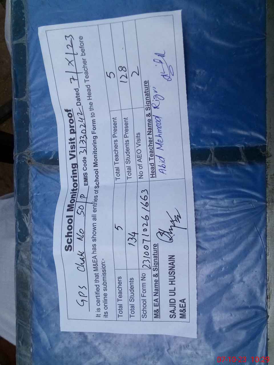 | EMIS Code: 31330242 | Name of School: GPS CHAK 50/P | |||