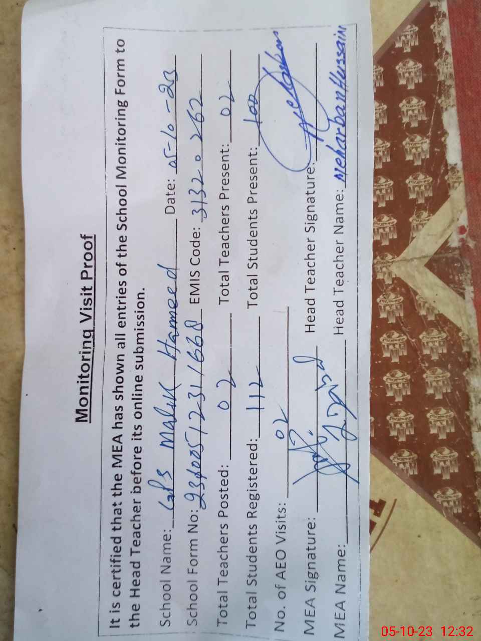 | EMIS Code: 31320262 | Name of School: GPS MALIK HAMEED | |||
