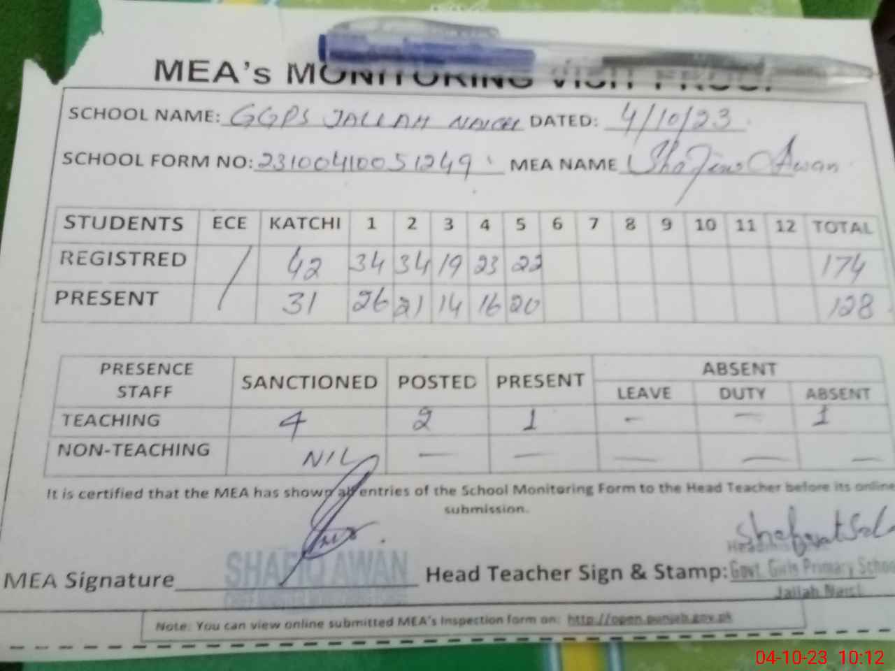 | EMIS Code: 36410366 | Name of School: GGPS JALLAH NAICH, MOOHI WALA KABIRWALA | |||