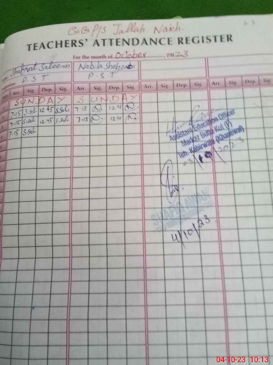 | Name: SH**** SA**** Designation: (School Headmaster's/Headmistress's) PST Phone/Cell Number: 03**** |