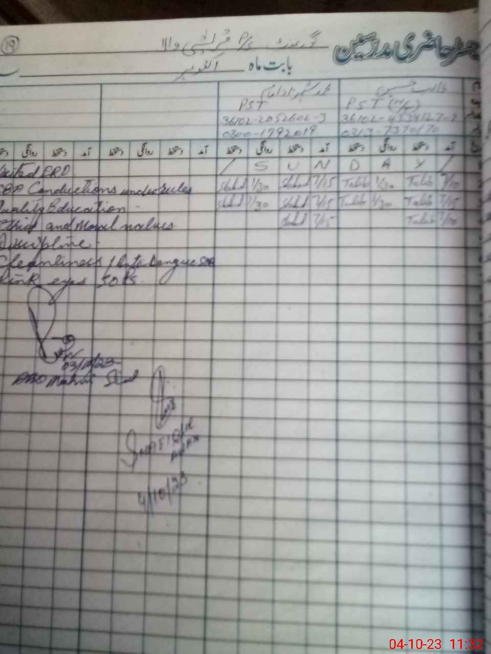 | Name: Ta**** Hu**** Designation: (School Headmaster's/Headmistress's) PST Phone/Cell Number: 03**** |