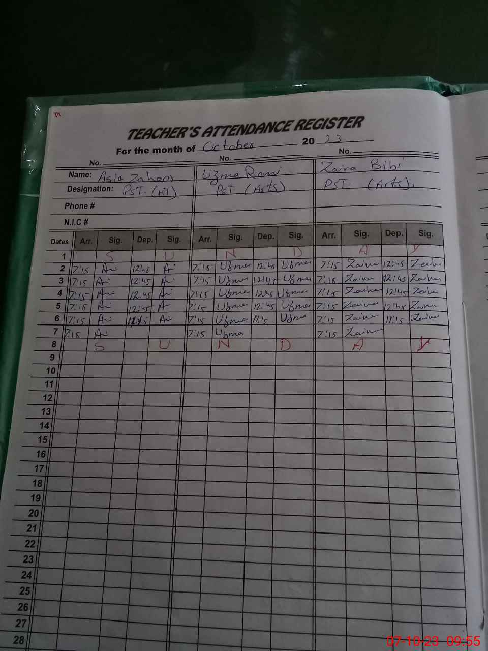 | CNIC | Full Name | Designation | R/C | Absence During Last Calender Month |