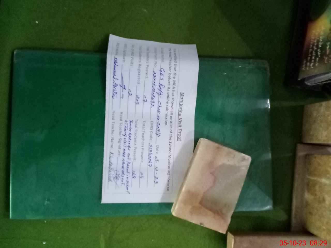 | Attendance Register | Head Teacher | MEA with School | Visit Proof |