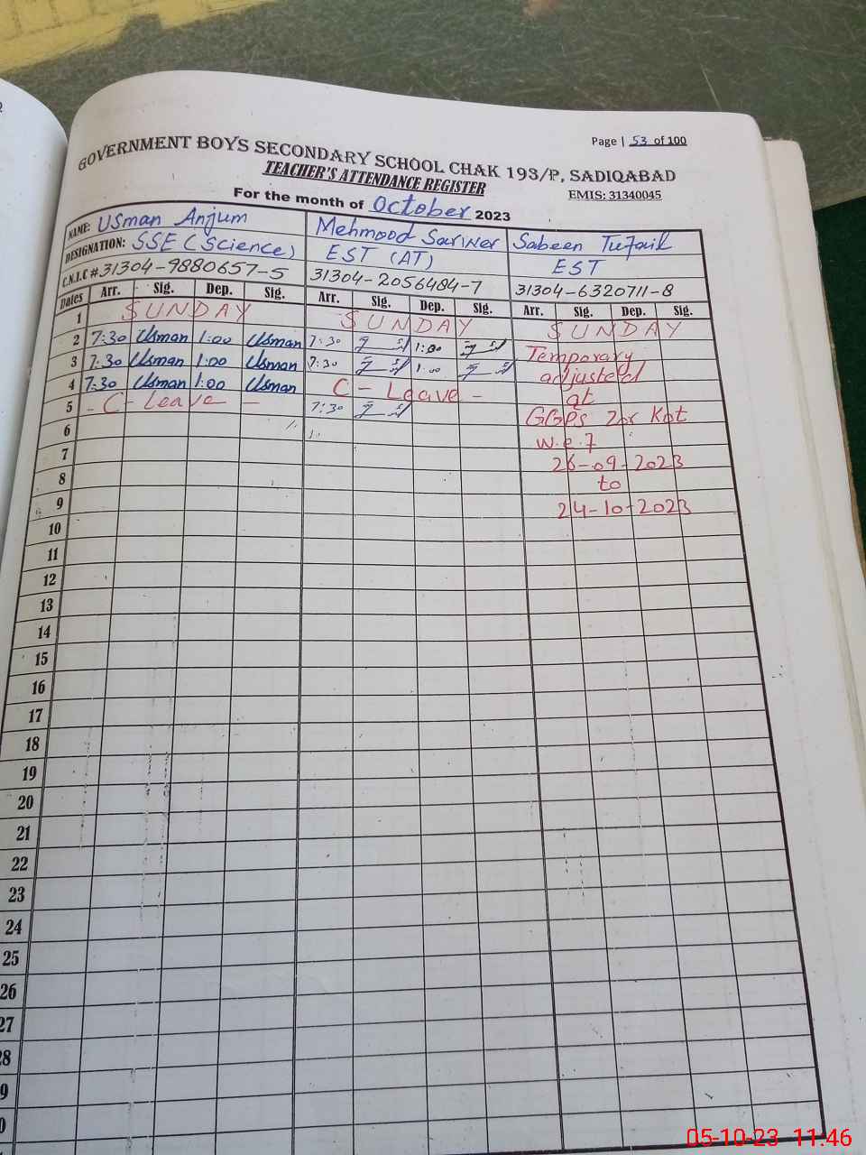 | EMIS Code: 31340045 | Name of School: GHS CHAK NO. 193/P | |||